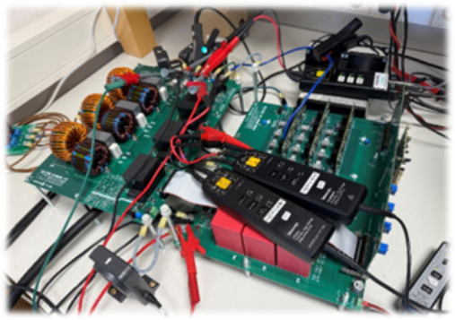 The aim of using such operating conditions was an accelerated replication of the field conditions, in which the power package operates, and to test the response of the MCPP to such conditions. The demonstrators (B2 and B6 bridges), both equipped with an over-molded piezoresistive stress sensor, (called the iForce sensor) were used to analyze their thermomechanical response to the applied loading conditions and measure stress states within the power package during operations. During both the operations, the warpage response using a Digital Image Correlation (DIC) method, and stresses in the package with the help of iForce sensor were measured. The iForce sensor is a piezoresistive stress sensor, as mentioned previously, which consists of a silicon die of size 1,67 mm x 1,71 mm placed on a Low Temperature Co-Fired Ceramic (LTCC) substrate. Through usage of gold bond wires, it is connected to copper pillars, or pins which help in controlling the sensing cells of the sensor.